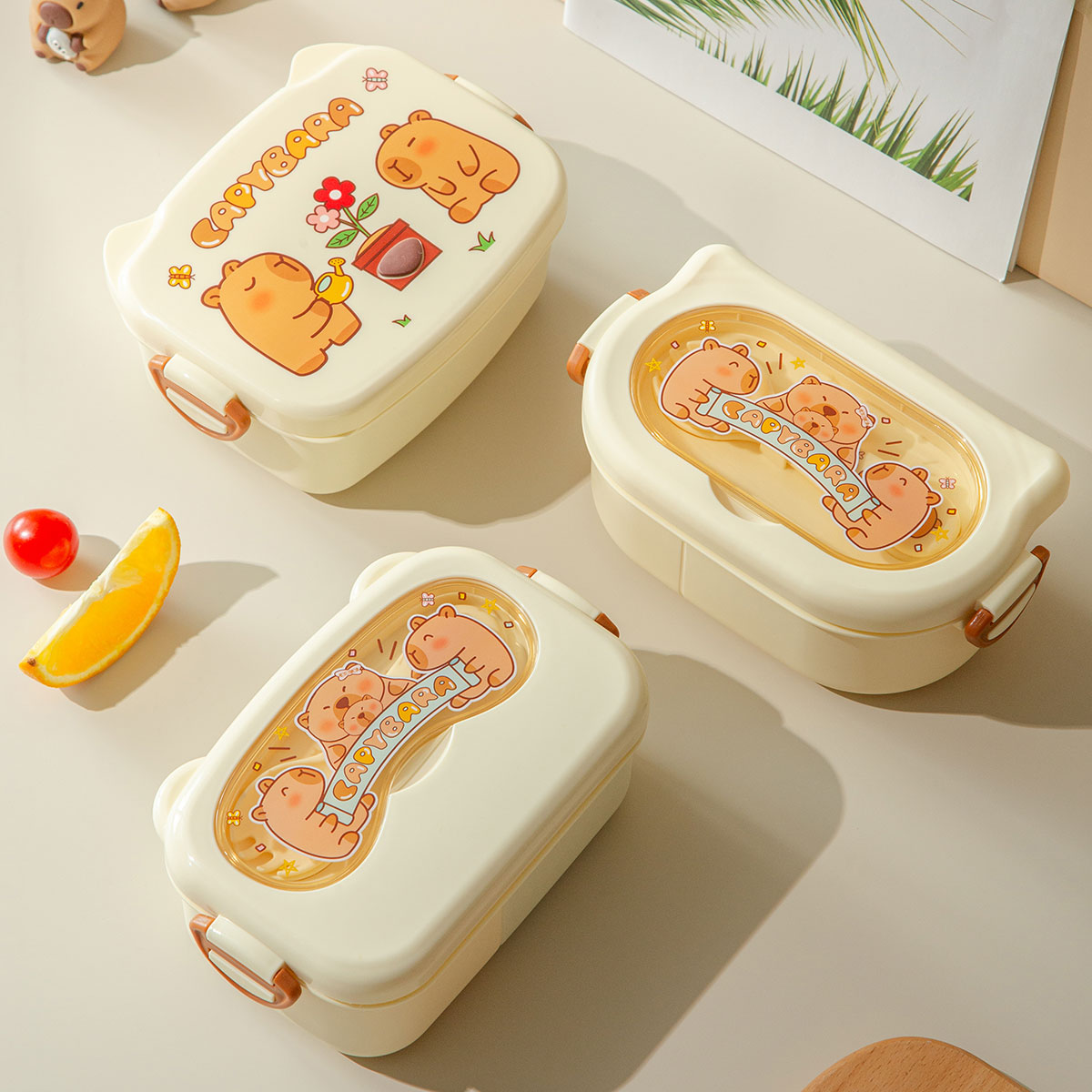 魔法豚長(cháng)方形/萌鏡豚/趣照豚分格便當盒