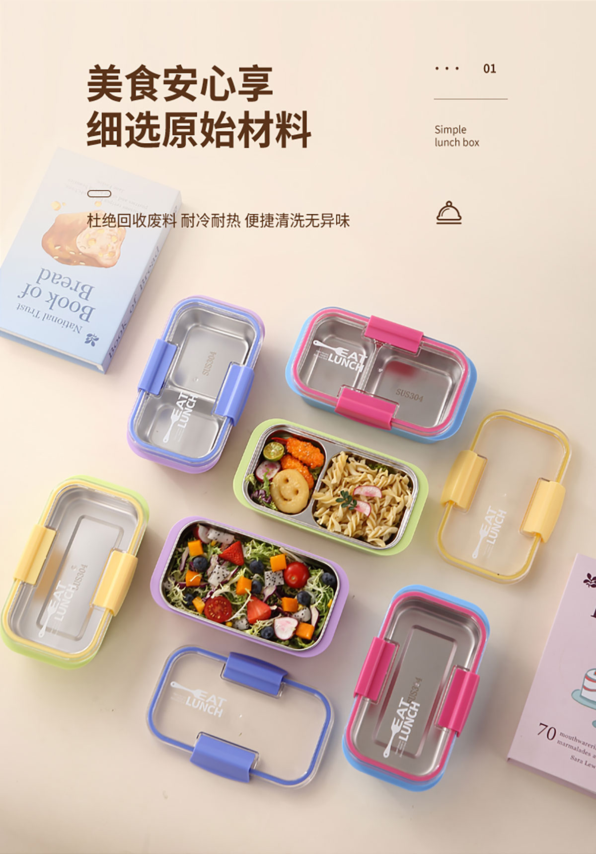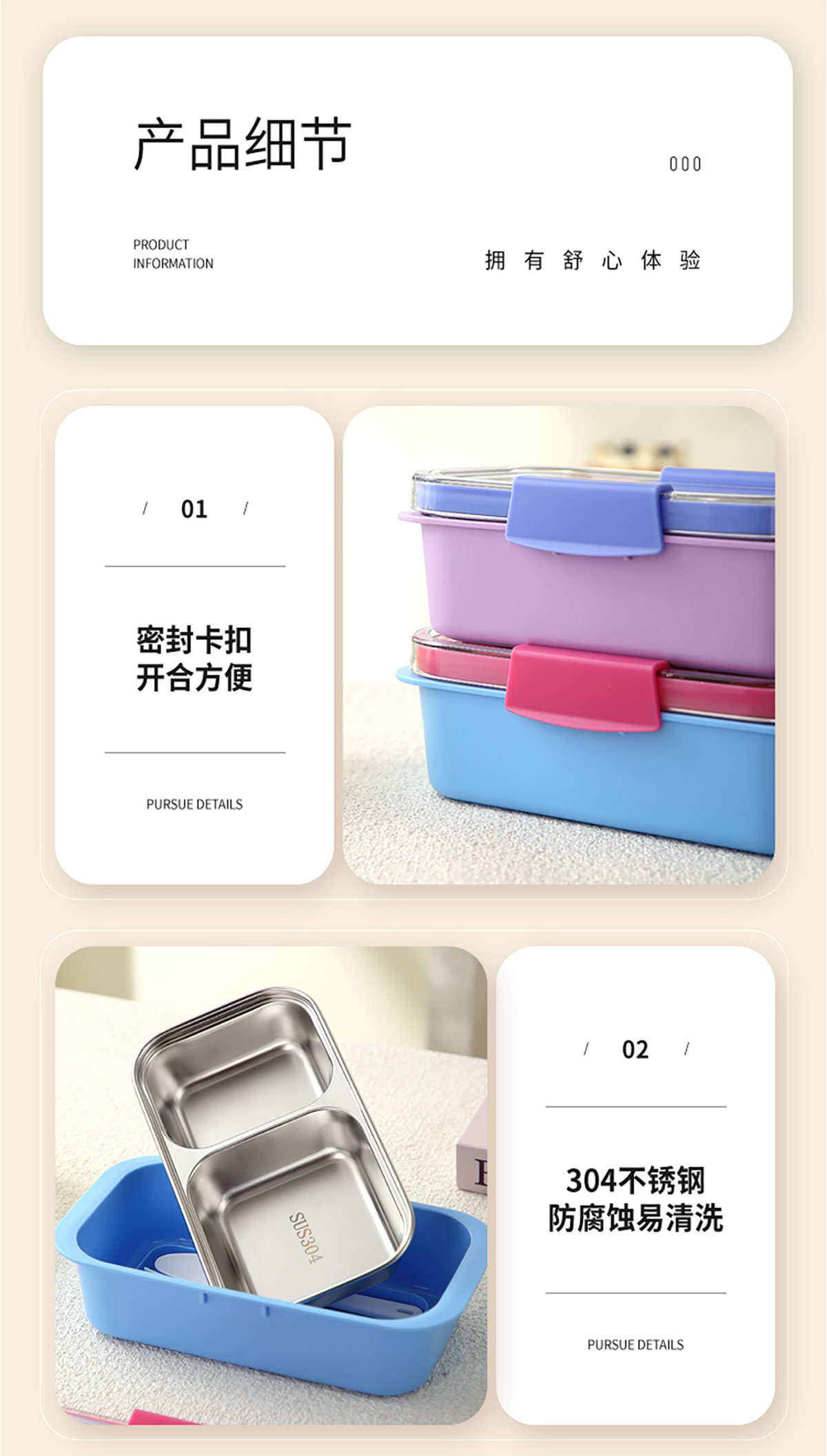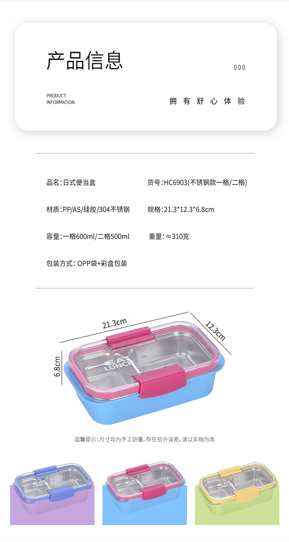 Size: 一格:213*123*68mm/600ml 兩格:213*123*68mm/500ml