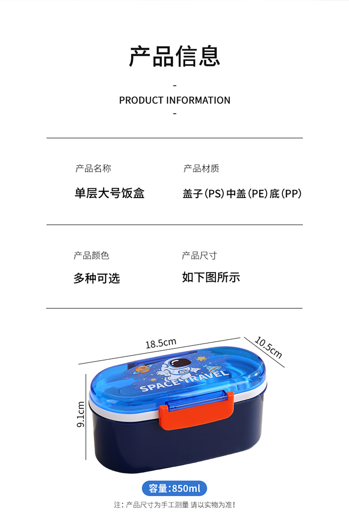 Size: 185*105*91mm/850ml