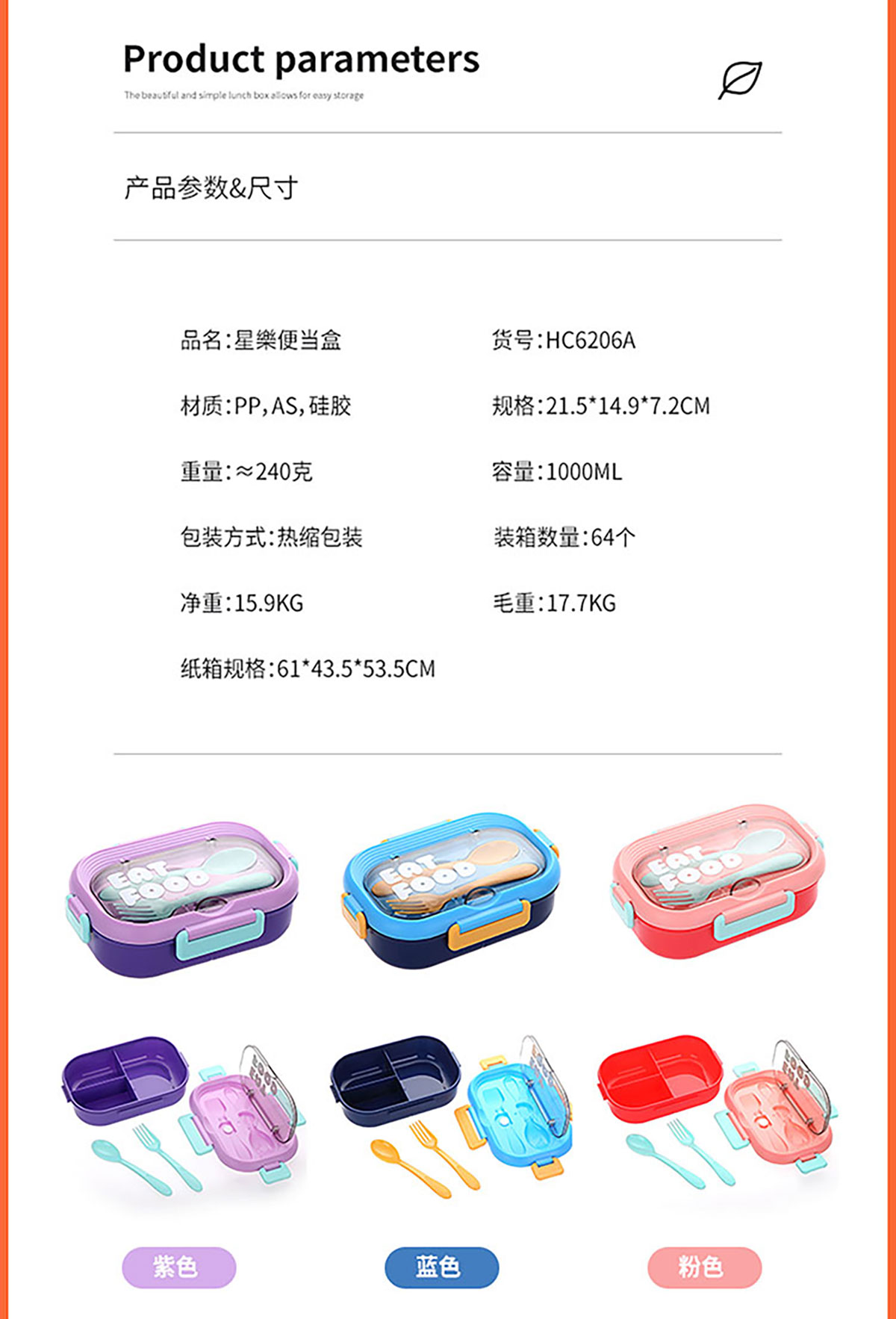SWY-HC6206A(三格PP款):215*149*72mm/1000ml