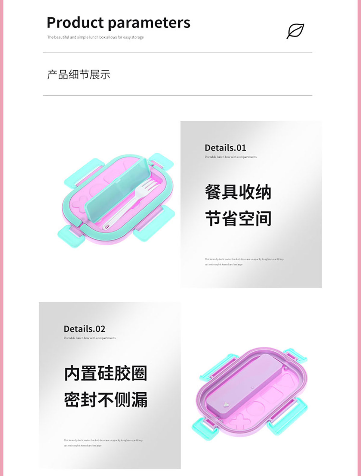 SWY-T207(套裝款):飯盒:215*149*71mm/1000ml 水壺:直徑82*高161mm/480ml